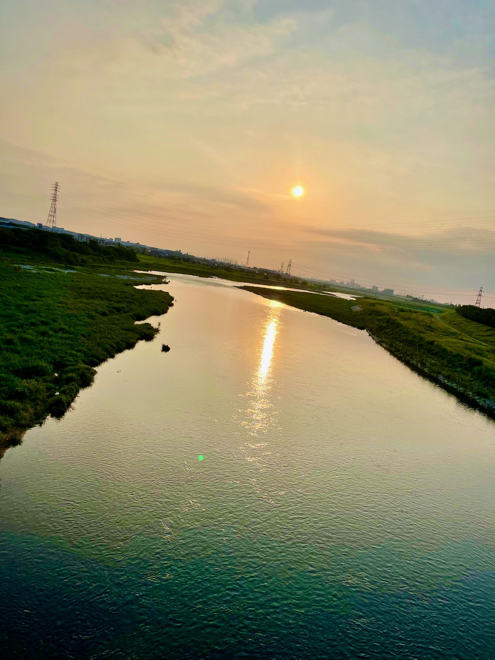 During the upstream segment I took it really easy, mostly paying attention to a podcast rather than focusing on exercise. I periodically turned around to admire the sunrise, which was not all that extraordinary this morning but was nevertheless nice to see after being locked indoors for three consecutive days. It felt amazing to take deep breaths of the river air while enjoying the lovely views.