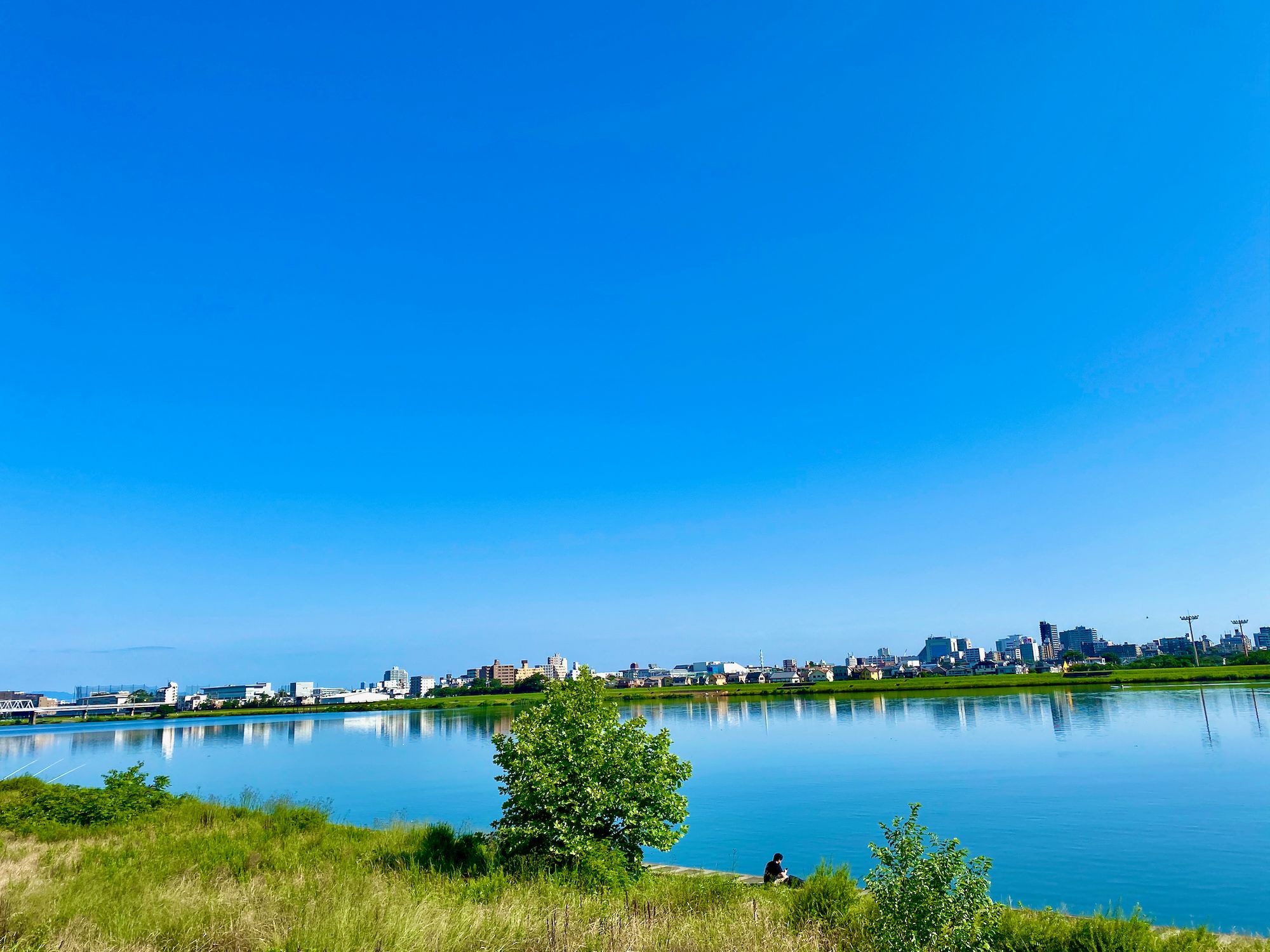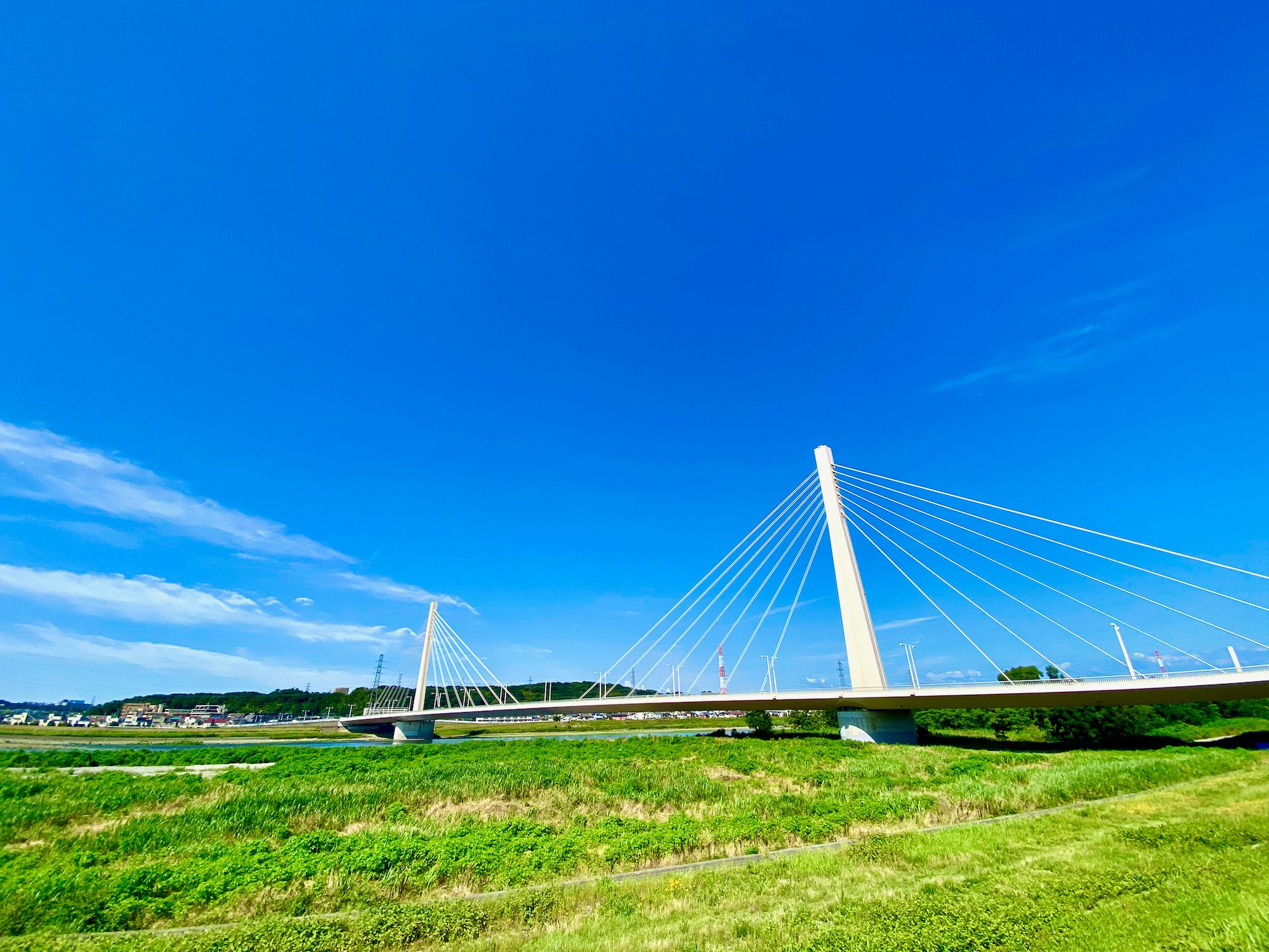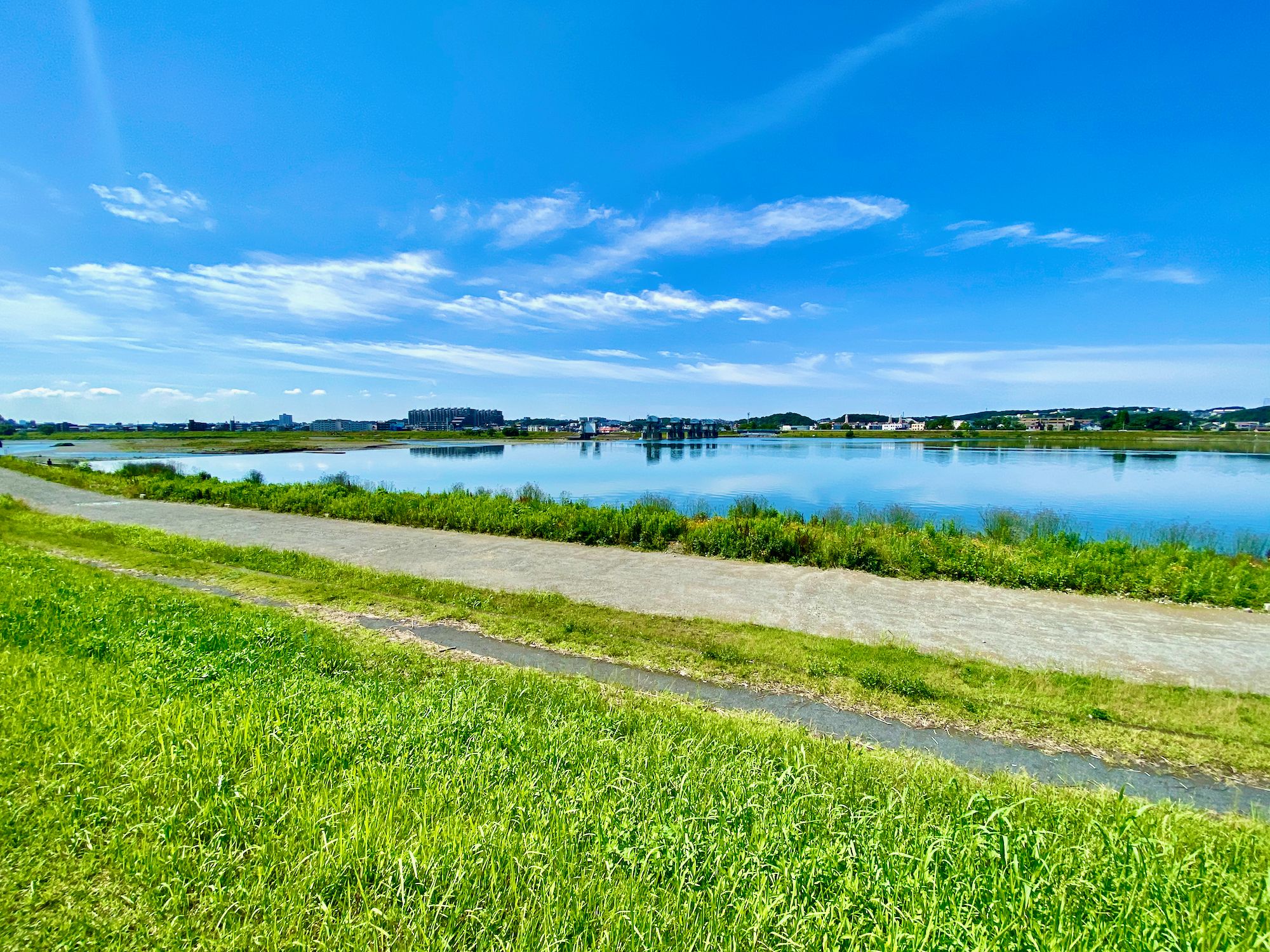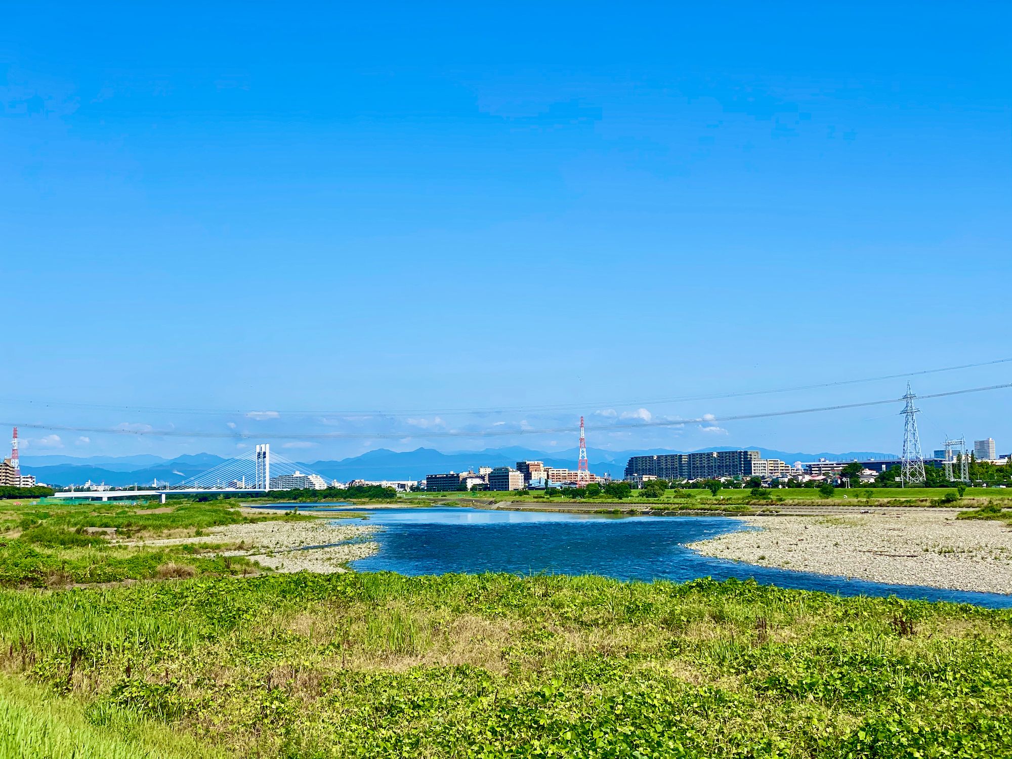 My route on this ride was to head downstream for a short bit before crossing the Tamagawa, and then heading upstream to my standard ending spot. I paused for a moment to hit the bathroom and hydrate, and then got back on the bike – at this point I was riding the Domane – and rode the 25k back home under the bright blue skies, next to the lovely warm blue water.