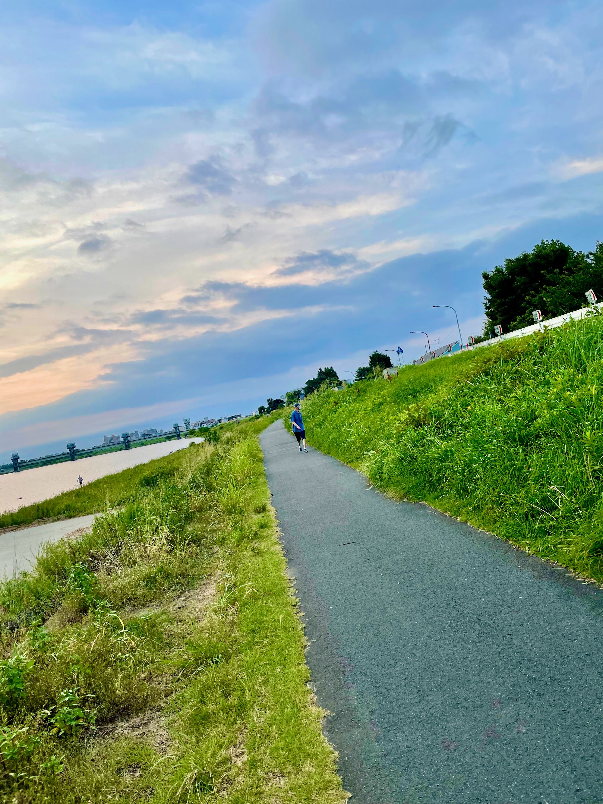 My vision was semi-impaired thanks to wearing dark sunglasses at this hour. I was able to see all I needed to see, so it is not as if I was in any danger. It is important to ride with some form of eye protection. I opt for standard sunglasses to protect my eyes not only from the wind but the bright rays emanating from the sun after he rises above Tokyo.