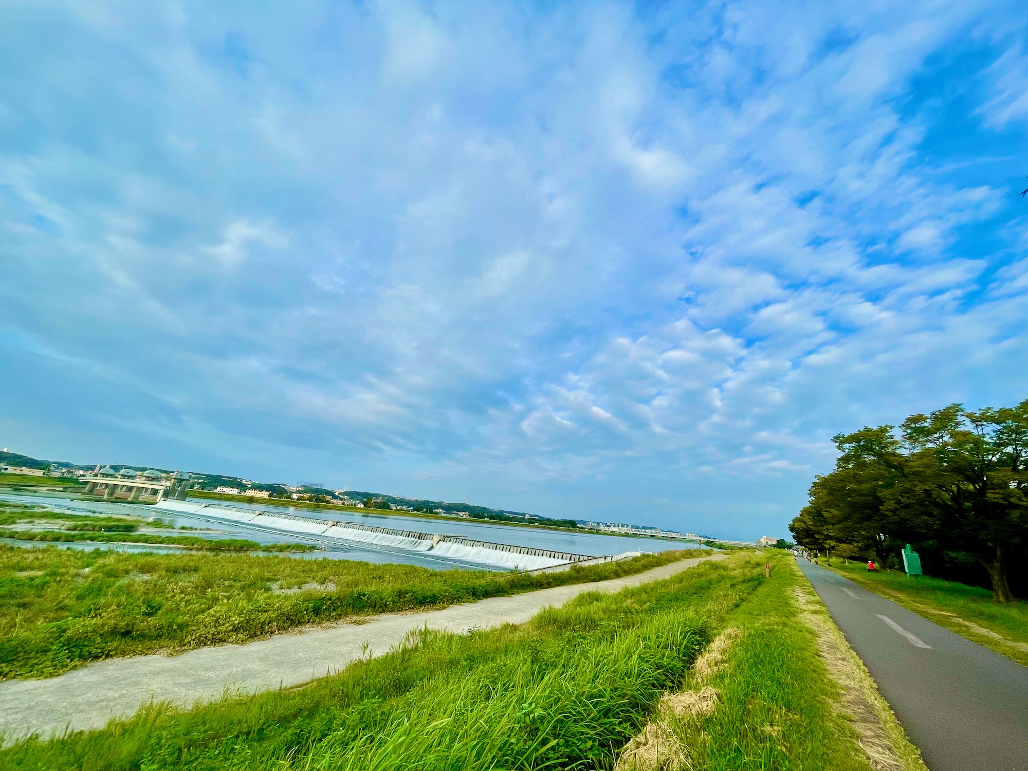 On the return trip I once again stopped along the river to enjoy the beautiful blue sky sitting atop the lovely blue river, listening to the calming and peaceful sound of the water running across the mini-dam. It is so relaxing I have actually contemplated riding out here sometime during the day, and doing meetings outside rather than stuck in my makeshift office.